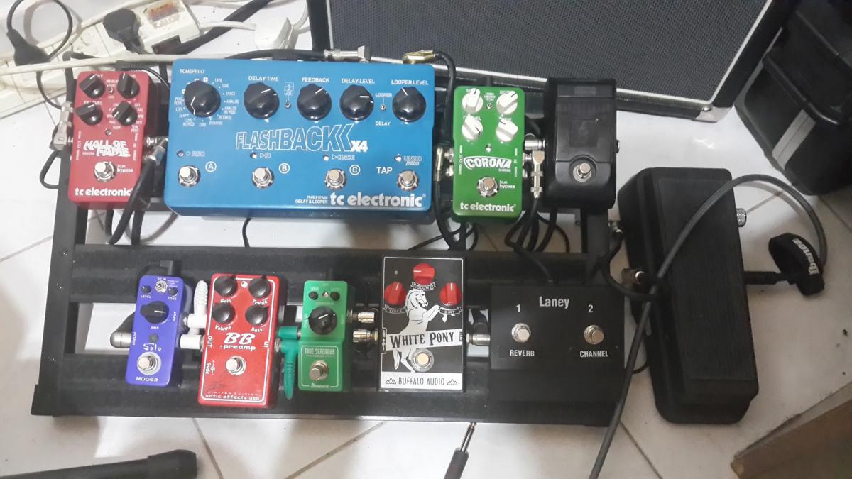 ElPelado Posted January 24, 2016 Posted January 24, 2016 Hace un tiempo reventé todo lo que tenia y me quede con poco, en este momento tengo un Wampler Pinnacle (distorsion) y un Vox Time Machine (delay), derecho a un Blues Mojo. Quiero un pedal de reverb y un od, prefiero prestaciones simples y, en el caso del od, que sea cristalino (que no me coloree la viola, tuve un ts9 y un ds-1, por ejemplo, y no me gustaron), TBP y que se lleve con el Wampler. Uso violas con mics doble generalmente, y toco blues/rock setentoso/stoner, o algo parecido. Que me recomiendan? Saludos. Quote
