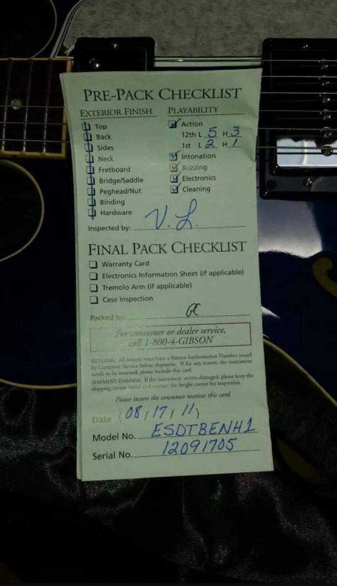 marianofc Posted February 26, 2019 Posted February 26, 2019 Hola! estuve buscando temas anteriores y la verdad que no encuentro informacion que me ayude en este caso. Necesito identificar esta guitarra que me ofrecen para cambiar. Es una Gibson ES-335 dot, del 2011, color azul. Es todo lo que se. El tipo la tiene publicada a 2800 euros, y surgio la posibilidad de un cambio, pero ahora no me quiero clavar. Ya le pedi una foto de atras del clavijero y otra de la etiqueta de adentro de la caja, en la que se vea entera, estoy esperando. Y la espera me esta matando! jaja Adjunto las unicas fotos que tengo por ahora. Quisiera saber el modelo exacto si es posible, tambien le escribi un mail a gibson, pero todavia no me respondieron. Muchas gracias y un saludo! Quote