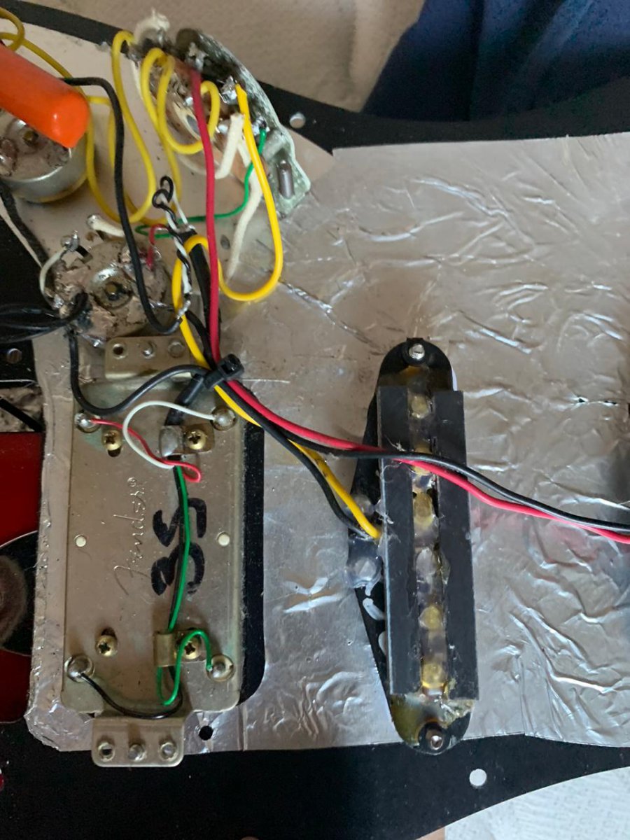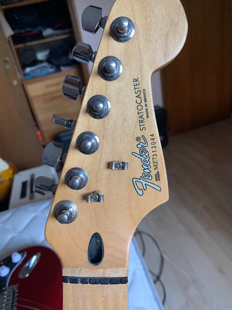 Nicocambon Posted November 7, 2020 Posted November 7, 2020 Como estan foreros!, Les ecribo por lo siguiente, acabo de comprar una Fender supuestamente Made in Mexico. Llegue a mi casa y de curioso decidí abrirla entera para corroborar que fuese brazo y cuerpo mim... Resulta que al abrirla , el brazo me parecio genuino, pero el cuerpo, no lo se, me parece falso. Supuestamente se le habia cambiado el puente a un squier (no se por que), eso es solo lo que me habia dicho el anterior dueño, y que la capsula del neck era de una fender american. Tiene configuracion HSS de fabrica (por lo que me dijo el dueño), pero al abrirla me di cuenta que le faltaba un pedazo de la madera donde va la pastilla del puente y que le habian encajado el humbucker (supongo), o tal vez venia de fabrica con esa parte quebrada no se. Necesito que me ayuden a identificar mas que nada el cuerpo, y las capsulas si es posible En el cuerpo solo identifique una pegatina que salia un Codigo (MO1675761), muy similar al del mastil (MO1646499) Y Una palabra escrita con lapiz rojo que dice "Data", mas que eso nada, ni numero de serie en donde se encaja el brazo ni nada. Quote
