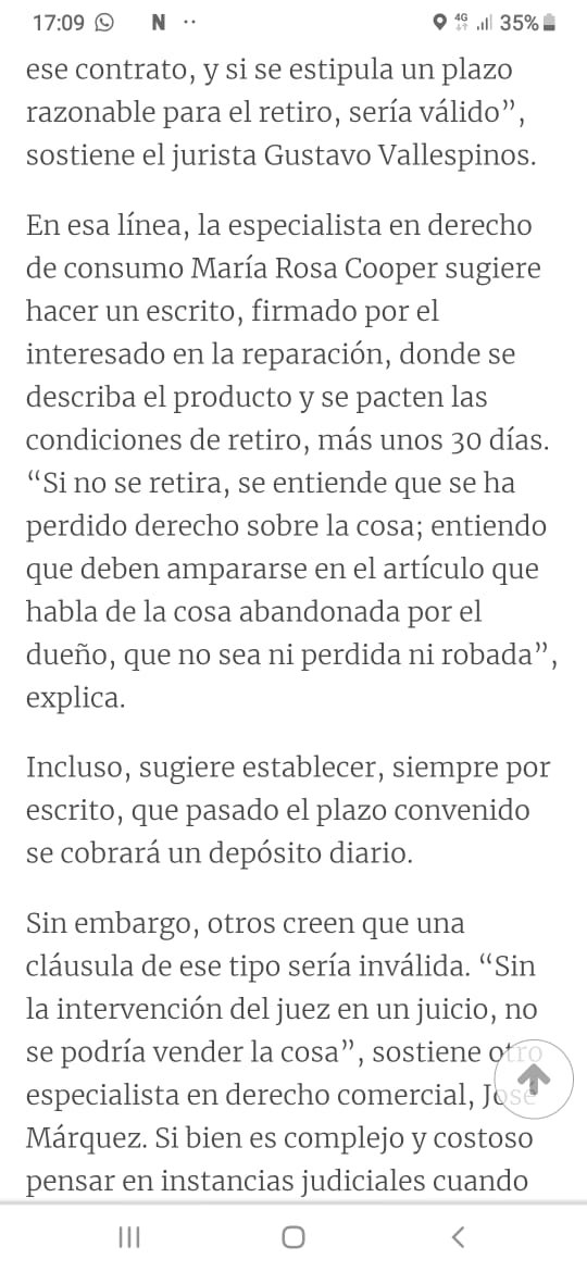 GuvNor Posted November 20, 2020 Posted November 20, 2020 No se si tanto para que pasen a ser de tu propiedad, pero con un cargo tipo "cochera" despues de X tiempo creo que reducirías la demora en el retiro. Eso sí, con lo que saques de eso ponete un seguro de paso por cualquier problema que surja de tener los bienes en tu poder. 2 Quote