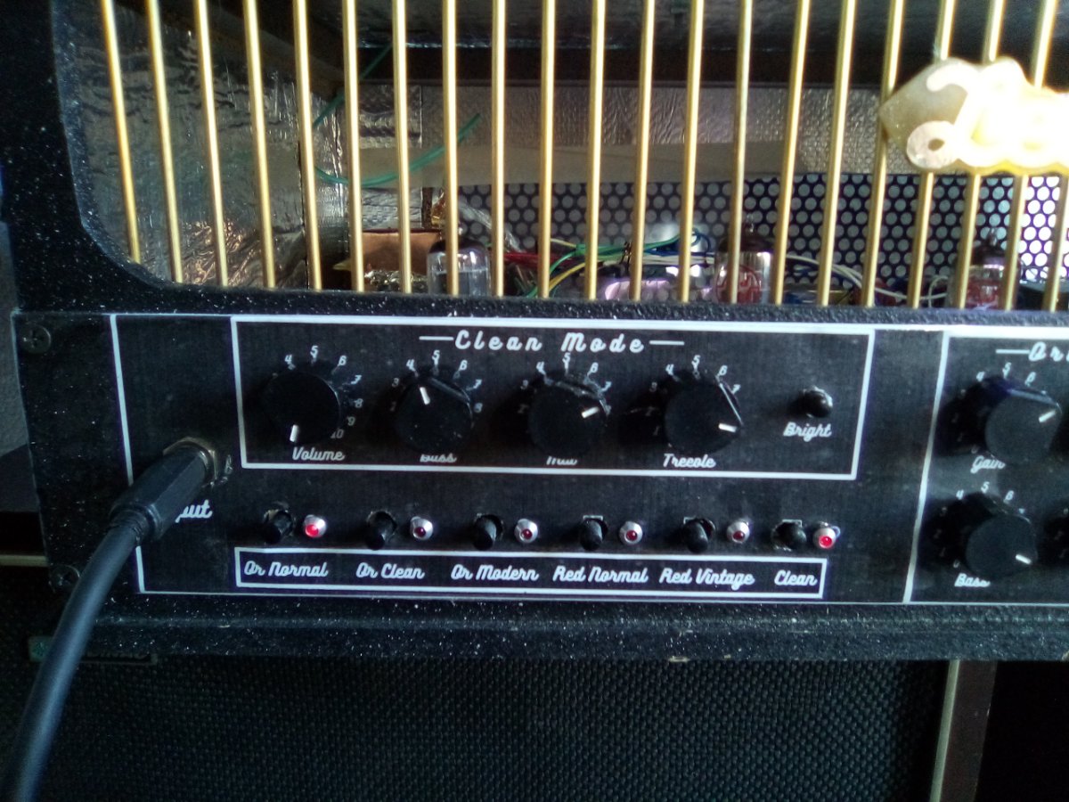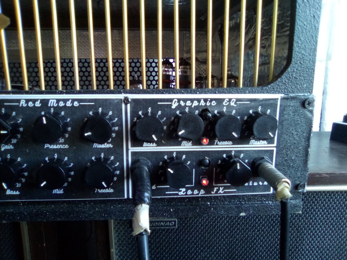 Popular Post Christiankno Posted April 19, 2021 Popular Post Posted April 19, 2021 Hola, hace un tiempo me puse como meta "clonar" un mesa booguie 2 canales, el pre sobre todo, porque un ampli de 100 watts para lo que lo uso, no tenia mucho sentido. Encontre los planos con toda la info para configurar los distintos modos de los dos canales, y alla fui. La verdad, crei que iba a ser muy dificil, pero prestando atencion y con paciencia, no lo fue tanto. Por eso, como me quedo gusto a poco (soy muy manija) le agregue un par de cosas. Les cuento Loop activo. Este funciona con una 12AU7. Anda muy bien, no colorea para nada la señal. Equalizador de tres bandas. Esto fue medio una exentricidad (use dos 12AX7 para hacerlo) pero bue, la idea era que fuese todo valvular, lo unico silicio son los diodos rectificadores y los reguladores de tension para la fuente. Volviendo al equalizador, mas alla del gasto, quede muy conforme, "redondea" mucho el audio, en lo que a mi gusto (puede ser dudoso) respecta, lo recomiendo fuertemente. Entrada clean clon Bassman. Como me sobraba media 12AX7 (la primer valvula del mesa solo usa un triodo) use el segundo para la entrada bright del pre del bassman y puse otra para completar el circuito. Esta perfecto para tocar bien clean, en el video suena una doble bobina y rompe un poco, pero con una simple queda perfecto, y tambien, cambiando el parlante, se puede tocar el bajo. Para hacer el switcheo del mesa, use los modulos de rele de arduino, hubiese sido mas barato y pequeño usar optoacopladores, pero fui a lo seguro de los "fierros" de rele. Use estos modulos porque tienen bastantes protecciones y no meten ruido. Para disparar los rele, como son hasta 10 combinaciones que hay que lograr para cada modo, use llaves pulsadoras on/off de 6 inversores. Esto se podria hacer con dos placas arduino, programando las salidas, y pulsadores. No seria mas barato, pero menos cablerio. Con el foot switch disparo dos rele que me seleccionan el canal "Leo" o el canal "Bugui", entonces paso de clen a distorsion con un pisoton no mas. La potencia es de 18 watts push pull, la clasica, una 12AX7 de inversora y dos EL84 El trafo de salida lo hice para 4, 8, y 16 ohm. Tambien hice un choque que filtra muchisiiimoo el ripple. La fuente la hice de 425 vcc con punto medio, una salida de 12 volts que regulo con varios 7812 para los filamentos y otra salida de 5V, tambien regulada, para los reles. Con el tamaño del gabinete exagere, pero bue, queda por si una ves lo hago de 100 watts y dual rectifier. Esta echo con fibrofacil de 10 mm y pintado con un aerosol simil piedra. Adentro le puse membrana para poder "encerrar" el circuito en masa. Ruido, como se puede escuchar en el video no tiene, no a ese volumen, pero la verdad es que a mas volumen, la relacion es bajisima, no me pidan lo DB porque no los se, pero creanme que es bajisimo. Bueno, les dejo unas fotos y un videito, soy mas que principiante con la guitarra, asique, sepan disculpar la interpretacion. Saludos 11 Quote