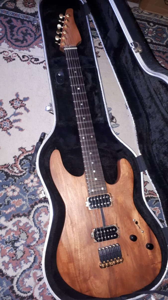 Popular Post Vazco Posted June 7, 2021 Popular Post Posted June 7, 2021 Buenas gente, espero se encuentren bien. Abrí este tema un poco para mostrar la guitarra que construí, pero principalmente para apelar a su conocimiento y solicitar su ayuda. A modo de preámbulo paso a comentar brevemente como fue que se dio este proyecto, data el año 2013 cuando me encontraba cursando en la universidad, sin laburo, y sin banda, con bastante tiempo libre y con unos pocos pesos en el bolsillo de alguna que otra changa. Por ese tiempo descubro al llamado por varios "maestro de maestros" Guthrie Govan, quien además de deslumbrarme por sus técnicas me dejo fascinado con su instrumento, y en lugar de hacer lo que debería haber hecho que es dedicar mi tiempo a aprender a tocar como se debe con la guitarra que tenia a mano en ese momento, decante en intentar recrear ese mismo instrumento con lo que tenia a mano, haya sido un error o no el dedicar mi tiempo a eso, lo hecho, hecho está, al pasado pisado o la frase similar que quieran utilizar. Por otro lado reconozco que en su momento me fue de mucha ayuda el proyecto, andaba con ciertos quilombos personales los cuales "descargue" en construir el instrumento, cabe aclarar que hay algo muy sanador en cuanto a laburar con madera. En fin, me tomo varias horas de esfuerzo y dedicación, más siendo que no tenia conocimiento alguno de luthería, pero lo que si tenia como aclare es el tiempo, y los recursos. Mi viejo es uno de esos tipos que se da maña para todo, y siendo un "fanático" de poseer herramientas para hacer / reparar lo que sea, contaba con todo lo necesario, y sumado a que por X razón había un pedazo de madera de Timbo estacionado hacia 20 años en el galpón de mi casa, tome el coraje de intentar realizar algo para lo cual no tenia el mínimo de preparación. En resumen, el resultado de todo se puede ver en las dos imágenes que adjunto, (espero las hayan cargado correctamente y se puedan visualizar), obviamente la guitarra tiene varios errores de construcción, pero en su momento me asesore con un luthier conocido para "salvarla" lo mas posible. Detalles técnicos: -Madera de cuerpo y mango de Timbo -Trastiera de Wengue -Trastes de acero inoxidable -Clavijas locking Sperzel -Puente Schaller Hannes -Mics Seymour Duncan '59, ambos son SH1 -Potes Di Marzio de 500k -Capacitor Ceramico Multicapa 47nf 0,047uf (473) 50v (busque recién el número que tiene inscripto que es 473, tengo poca idea sobre esto, pero entiendo es ese que detalle). Creo no me falta detallar nada, cualquier cosa después edito y agrego. Por último y para no aburrirlos más, paso a la parte donde apelo a su conocimiento, y en resumidas cuentas la posta es que la guitarra no tiene cuerpo, le faltan graves, no soy una persona que tenga gran conocimiento tonal (como se habrán dado cuenta flaqueo por todos lados jaja), pero es lo que me transmite la viola, eso si, es comodísima para tocar, pero en cuanto a sonido es flaca. Ahora, mi pregunta hacia la comunidad es, y sabiendo que ya es una cuestión de maderas / construcción, existe alguna forma de salvar un poco esto? quiero decir y creo es la única que me quedaría, desde el lado electrónico, quizás otro tipo de mics con otro tipo de EQ, no se me ocurre otra, creo ya lo que es capacitor y potes van mas para el lado de recortar agudos si no me equivoco, pero bueno, quizás por el lado de mics y si es así, cual dirían?, aclaro mi problema es mayoritariamente cuando uso el mic del puente, más que nada para que vaya un poco más enfocado a ese mic la respuesta, pero si se les ocurre alguna especie de set o lo que fuera, toda info viene bien. Desde ya, muchas gracias. 17 Quote