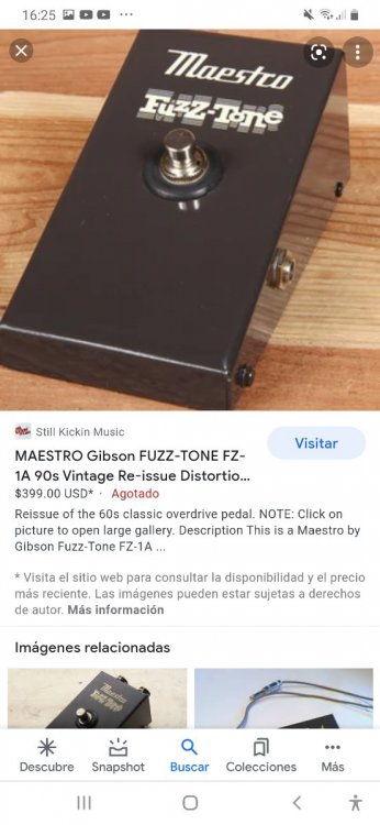 Music9 Posted June 15, 2021 Author Posted June 15, 2021 Ya tengo el nombre del pedal, es un Maestro Fuzztone de Gibson 1 Quote