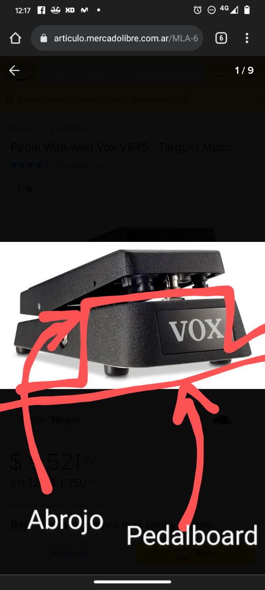 Nicolás Barrios Posted September 6, 2021 Posted September 6, 2021 Cómo andan musiquiatras? Acabo de adquirir un Wah dunlop crybaby y no logro entender cómo "abrojarlo" a mi pedalboard (doble a tam 40-4), resulta que viene con 4 patas, que no permiten que se adhiera facilmente a la pedalera, al ponerles abrojo a las 4 o tiras que las unan, estas se quedan pegadas a la pedalera y no retienen el wah (como muestro en la foto). Luego pensé en sacarle las gomas que hacen de patas, pero tampoco creo que funcione, porque como adjunto en la tercera foto la parte de abajo del pedal no está unido al resto. Ayuda! acepto todo tipo de sugerencias Saludos Quote
