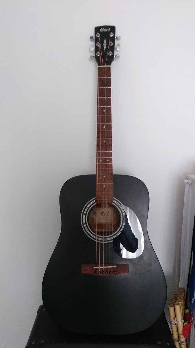 Popular Post marcosg2k Posted October 6, 2021 Popular Post Posted October 6, 2021 (edited) Hola gente como van? Hago este post para compartirles que adquirí una guitarra acustica Cort AD810 que tiene el formato dreadnought, se la compré a un jovencita de 20 años que la tenia para aprender y desistió, nos contactamos por facebook y luego nos encontramos en un shopping para hacer la operación. Nueva sale 30 K y pagué 20 K, un lujo en estado mint. Sinceramente Cort no defrauda, venia con funda , llave allen, puente de repuesto y un pin extra para fijar la cuerda. Noté la acción alta al tocar y le metí un 1/4 de vuelta a la derecha para relajar la curvatura del mastil, ahí empezó a intonar, giré un poquito más y quedó perfecto. Me llama la atención que los trastes son chiquitos , pero es muy comoda al tocar. Según el folleto de la marca dice que es madera porosa, si mirás para adentro parece pino de sodimac pero no puedo determinar que es. Cort una vez mas ofrece precio-calidad excelente y esta guitarra vino regalada. Que opiniones/experiencias tienen de la marca? Despues subo fotos porque estoy en bondi volviendo a casa. Un saludo a todos Edited October 6, 2021 by marcosg2k Mas info 15 Quote