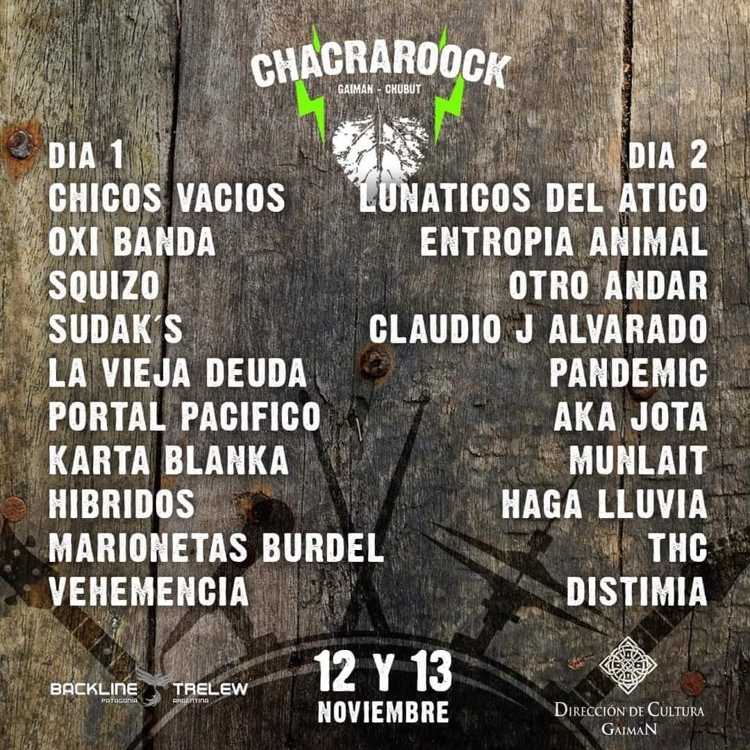 Martín.S.Pedrozo Posted November 4, 2022 Posted November 4, 2022 Hola gente! acá en el valle del Chubut está el chacrarock,evento de 20 bandas,10 por día, con temas originales.Se hace en Gaiman en una chacra,hay de todo..feria,foodtracks,beertrucks, tattoo stands...y las bandas van desde rock hasta reggae,black metal,heavy metal,stoner,de todo! este creo q es el 5to año y cada vez está mejor!si están por la zona,vayan! Dejo la grilla, nosotros somos la vieja deuda, tocamos el Día 1 a las 19 hs. 3 Quote