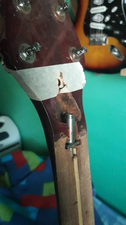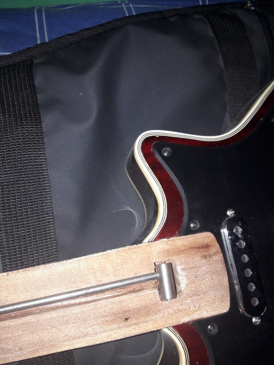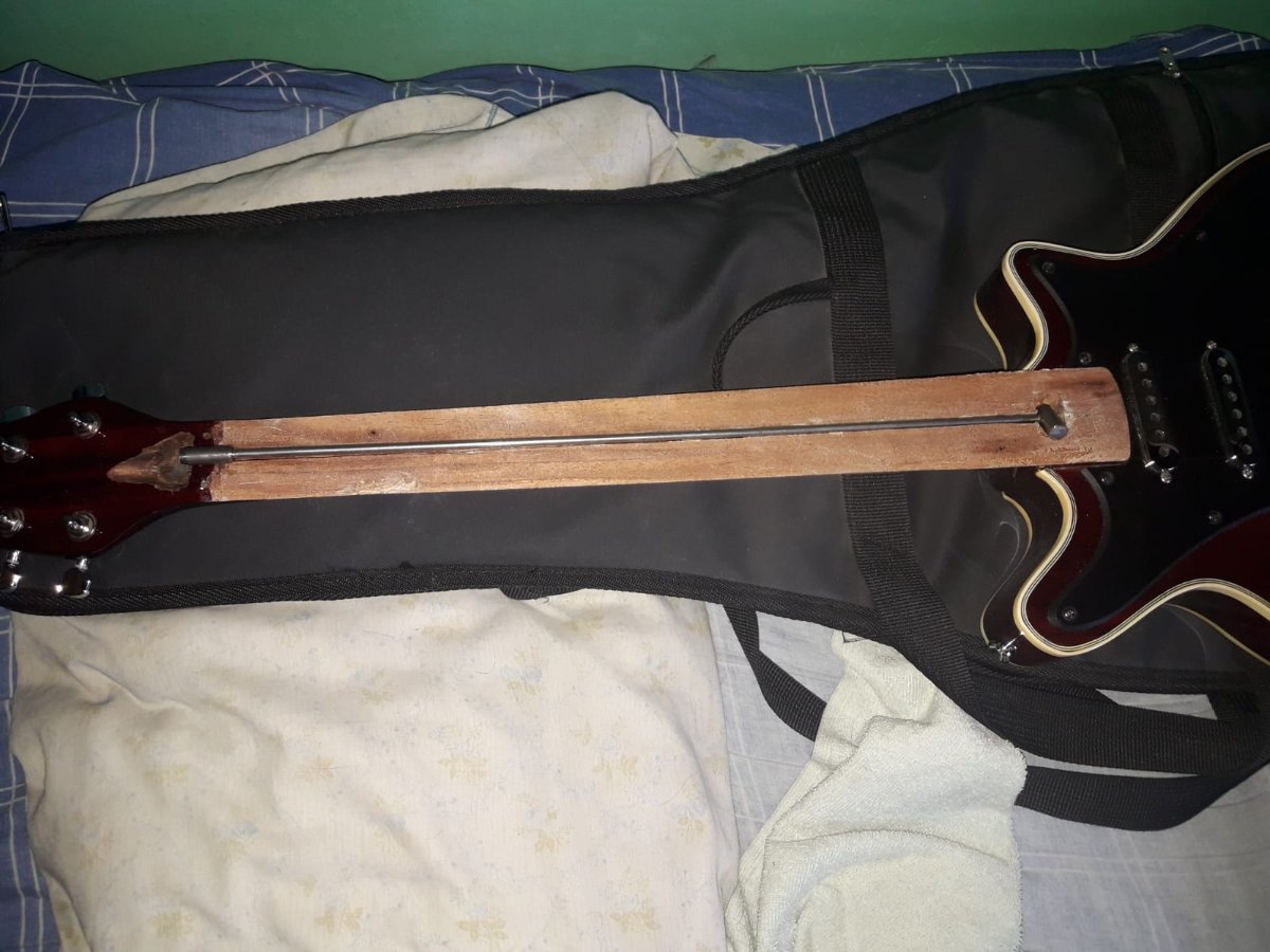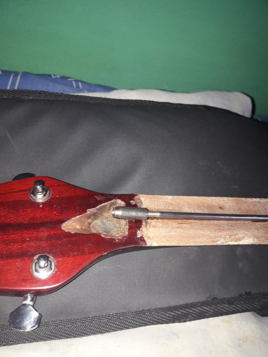 Laier Posted February 2, 2023 Author Posted February 2, 2023 hace 7 horas, Juan dijo: El tensor ponelo lo mas atras que te sea posible, donde lo moviste no se ve de atras de la guitarra si tenes ahi el talon o el mango ya es finito. SI el mango es finito con el tensor asi, ademas de debilitar esa parte del mango se va a doblar ahi. No es necesario tener semejante ancla del lado del clavijero, con qeu apoye una arandela plana chica alcanza y le ganas 3 mm al tensor para atras. El mango es mas o menos como el de una guitarra criolla. Medio grueso. Ahi donde mas o menos me decis queda asi. Quote