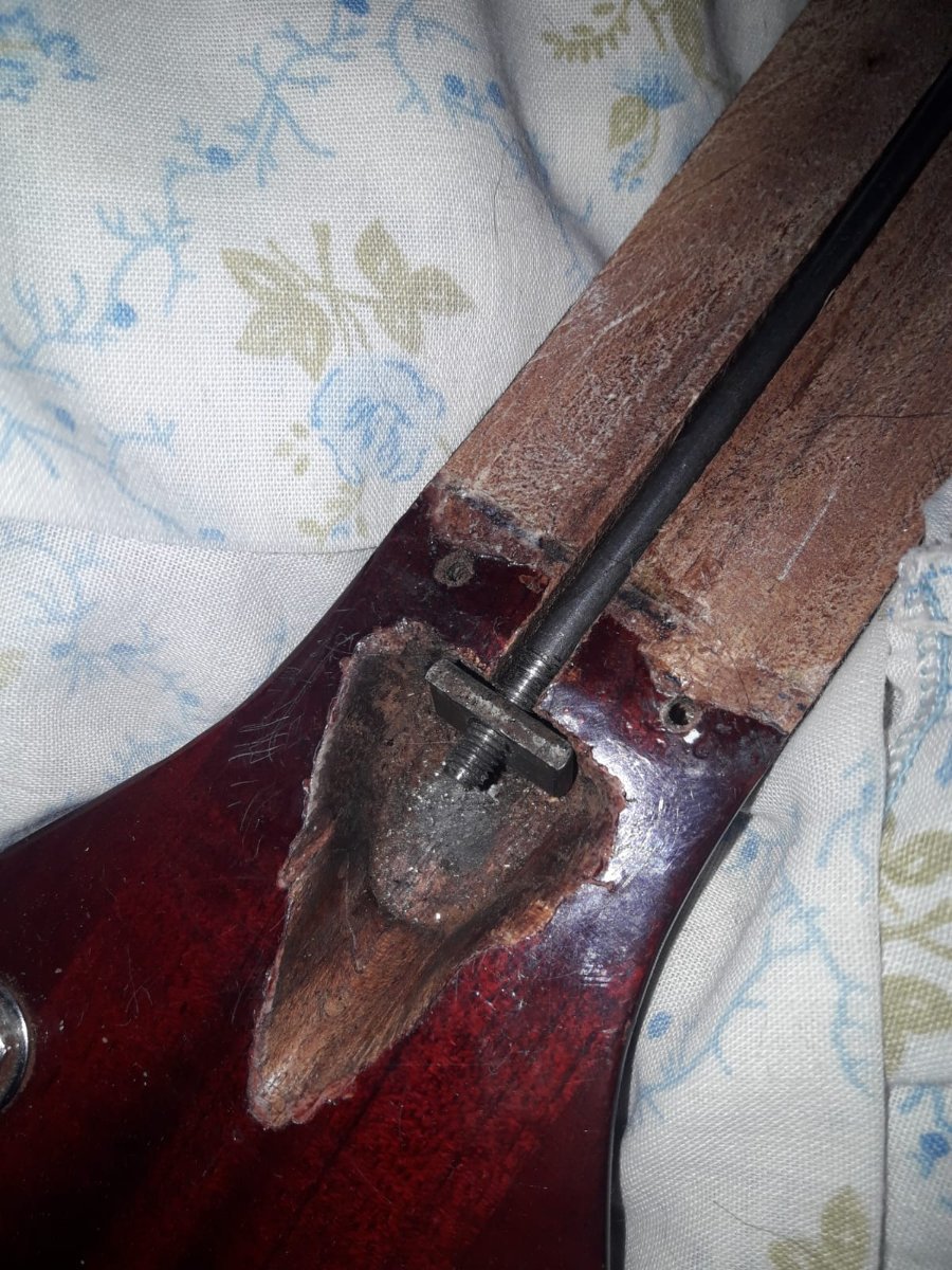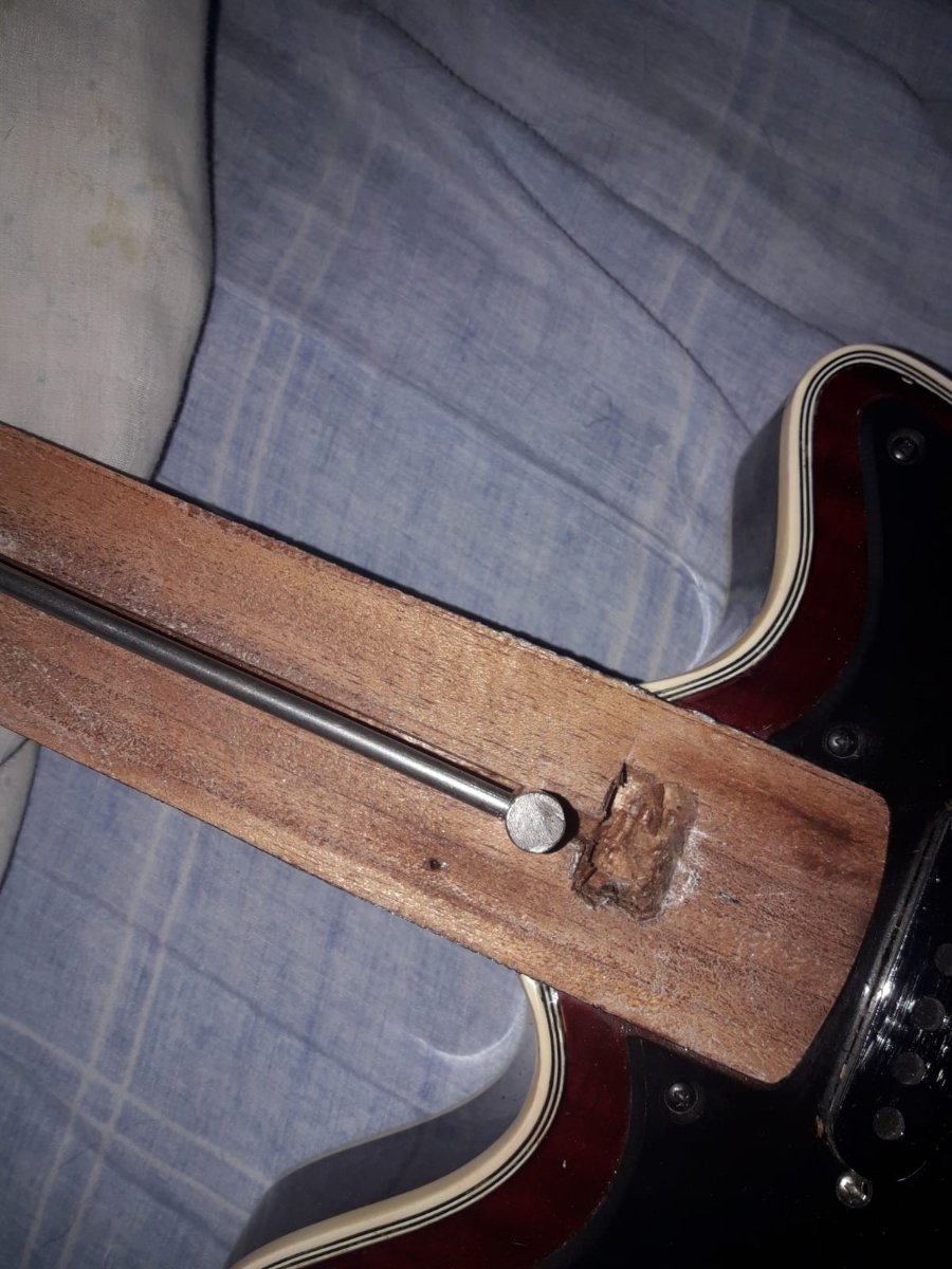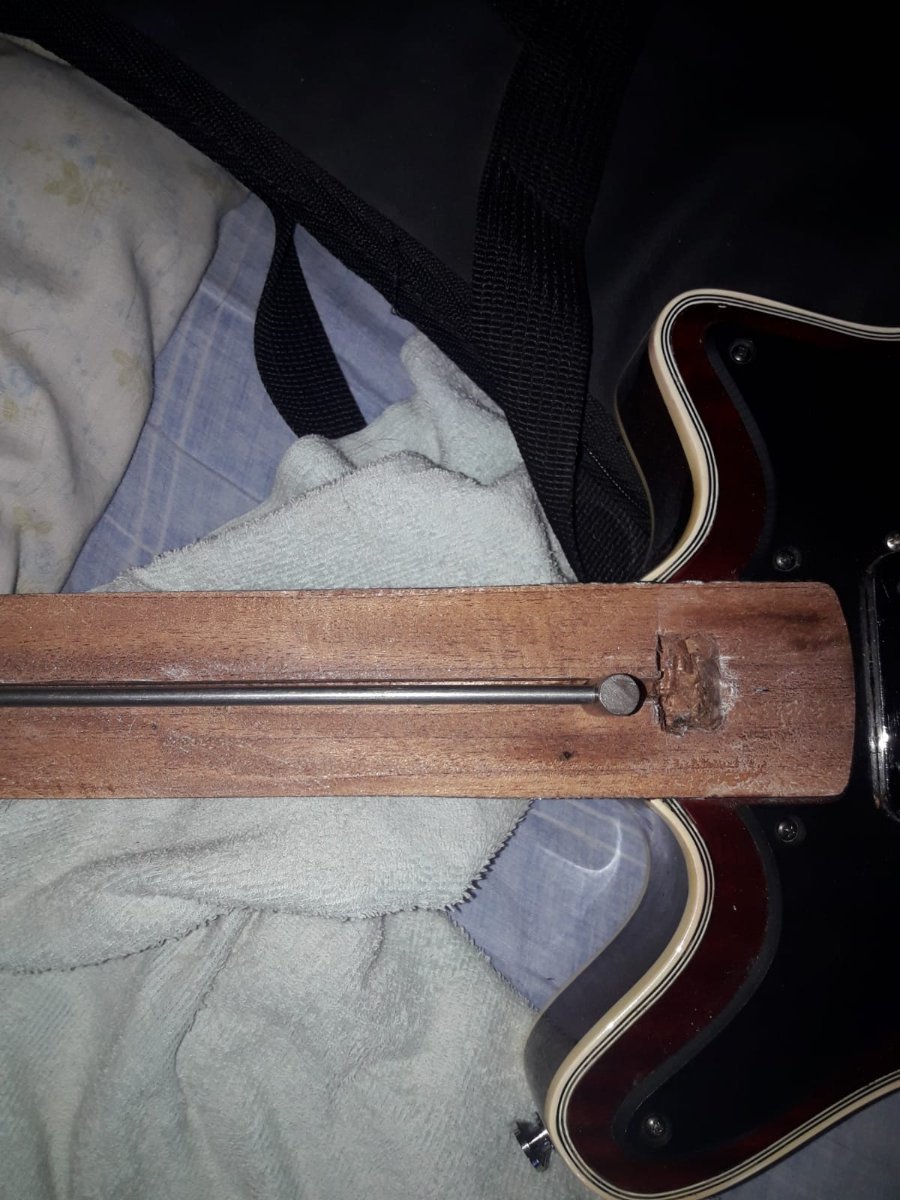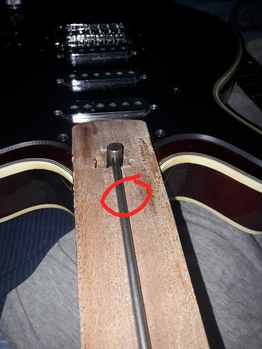 Juan Posted February 2, 2023 Posted February 2, 2023 El tensor ponelo lo mas atras que te sea posible, donde lo moviste no se ve de atras de la guitarra si tenes ahi el talon o el mango ya es finito. SI el mango es finito con el tensor asi, ademas de debilitar esa parte del mango se va a doblar ahi. No es necesario tener semejante ancla del lado del clavijero, con qeu apoye una arandela plana chica alcanza y le ganas 3 mm al tensor para atras. 1 Quote