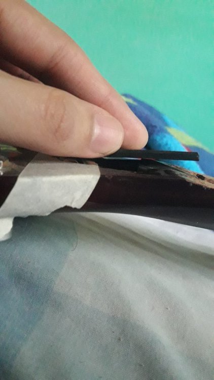 Laier Posted February 1, 2023 Author Posted February 1, 2023 hace 21 horas, tupac dijo: Para mí está perfecta, es una de las opciones que podrías llegar a conseguir en Bs As. Tal vez tengas que rellenar el hueco del talón del mástil y rehacer el orificio para el anclaje del alma. Es una pavada que se hace con un taladro. Lo que sí, a esa alma la recubriría con tubo termocontraible o con cinta de embalar bien pegada, para reducir el riesgo de que se pegue. Actualizacion del caso! Ya tengo el alma! La cosa es que no se que hacer ahora jaja. Veo que tendria que hacer algo en la parte del clavijero para que se ancle bien el alma quizas? Al final pude encontrar una para ajuste con llave Alen jaj Quote