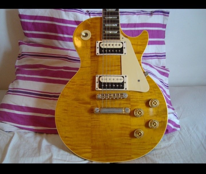Popular Post ElWray Posted February 5, 2023 Popular Post Posted February 5, 2023 Esta historia de amor comienza en 2011. Se la compro a un importador por izquierda de tantos que habia en esa época. Cuando la veo era un modelo raro, pero el precio era muy bueno y era la viola de mis sueños. Investigando luego llego a que es uno de pocos ejemplares de una tanda de 1992 que (para mi) se hicieron con lo que había dando vueltas por ahí. Todas comparten las mismas carácterísticas: standard con herrajes dorados y tapas de 3 partes. He aqui la mia (no tengo muchas fotos, pongo las que hay): El tiempo pasó juntos, y yo soy de los que se apegan. Estuvimos en bandas, shows, zapadas. Se pasó un par de años largos guardados cuando compramos la casa y entramos en obra, a la vez que nació mi primer hijo. Luego volvimos con toda y seguimos. Pero ustedes ya sabrán cómo son los ribetes del amor, habia algo de la rutina que nos estaba aburriendo. Así que a fin del año pasado decidí que era el momento de dar el paso. La verdad que el tema de la tapa de 3 partes, esa asimetria, me molestaba estéticamente. No me terminaba de llenar. A la vez, los trastes ya tenian demasiado rock and roll encima (hacer un acorde de Am en posición 1 o tocar la penta de Em en posición 12 era una hipótesis pero no una realidad), por lo que hice lo que no se suelen hacer con las LP: un refresh de imagen y una reentrastada (MATENIENDO LOS NIBS, a pesar de que me costó encontrar un luthier que concuerde con mis intenciones). Fue así que me acerqué a Seba Duré y le pedi el laburo. "Color de un cynar que levemente se va mezclando con el agua de los hielos derretidos durante un atardecer en el meditarraneo del sur de Italia... PERO QUE NO SE VEAN LAS TRES PARTES DE LA TAPA DE ABAJO". El resultado refleja enormemente mi amor eterno por las Gibson de los 70: Hoy nuestro amor está totalmente renovado, siento que la puse 0km con dos movimientos, y sin embargo sigue siendo mi vieja y querida compañera. 15 Quote