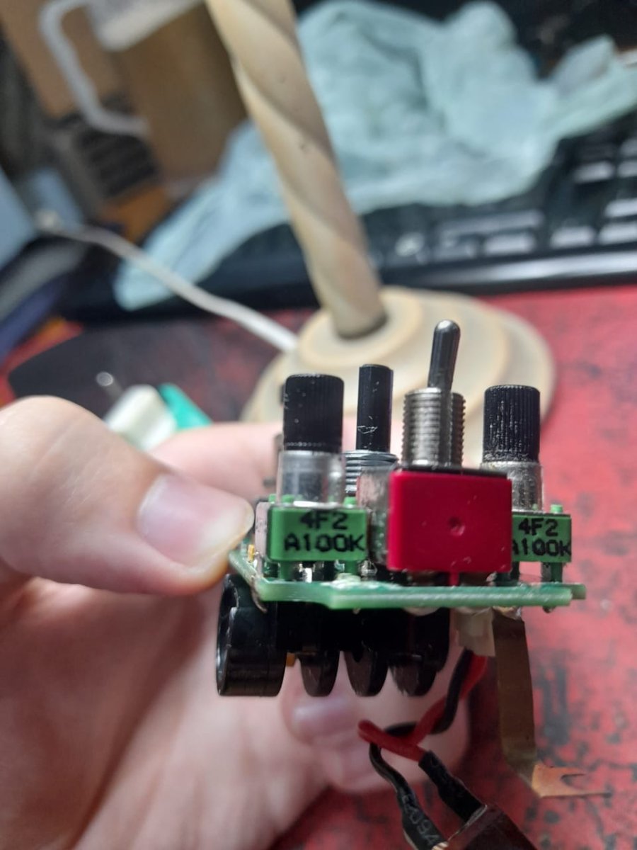 tobiasmoroz Posted March 1, 2024 Posted March 1, 2024 hola gente, ando con una calentura tremenda. hoy cambie un pedal fuhrman dual highgain por un mooer black secret, que seria un rat. la cuestion es que al momento de conectarlo no anda, lo desarme, lo limpie con limpiacontacto, el problema esta en que el potenciometro chiquitito que tiene para regular el filtro no anda. lo tenes que poner al minimo y apoyarle el dedo, osea esta roto (de por si esta mas flojo que el de volumen). alguno sabe algun lugar por la matanza donde pueda reparar esto? que laburen con soldadura smd y donde podria conseguir repuesto. adjunto una foto Quote