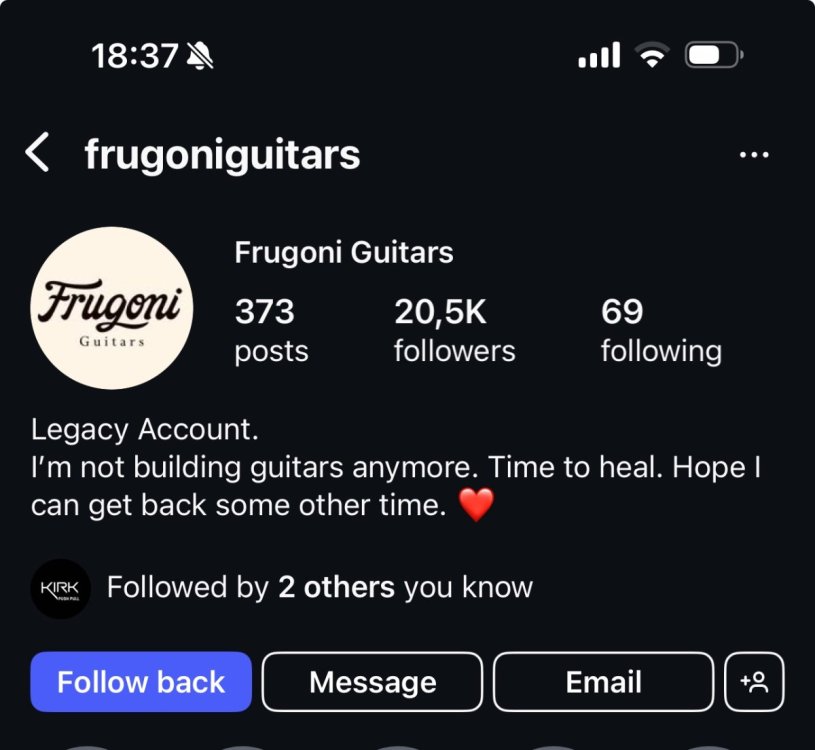 Mr. TOC Posted May 6, 2024 Posted May 6, 2024 En una entrevista que ví hace no mucho, no recuerdo el canal de YT, había dicho que quería dedicarse a la producción musical, que seguía con la construcción de instrumentos, pero no descartaba hacer una pausa o directamente finalizar su etapa de Luthier. Puede que haya dado ese paso también. Quote
