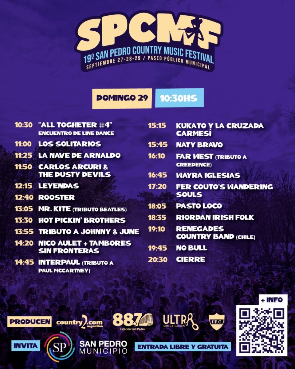 AleMZ Posted September 22, 2024 Posted September 22, 2024 hace 23 horas, praka dijo: El finde próximo, 27, 28 y 29 de septiembre se hace la edición 2024 del San Pedro Country Music Festival. Hermosa experiencia, gratis.lleno de food trucks, buena música y line dancers. Nuestra banda toca el domingo 29 a las 13 los temas country de los Beatles, que hay unos cuantos, dejo flyer oficial y videíto de nuestra participación 2022. Copado, que lindo festi, en Far West toca un gran amigo. Mucha mer! 1 Quote