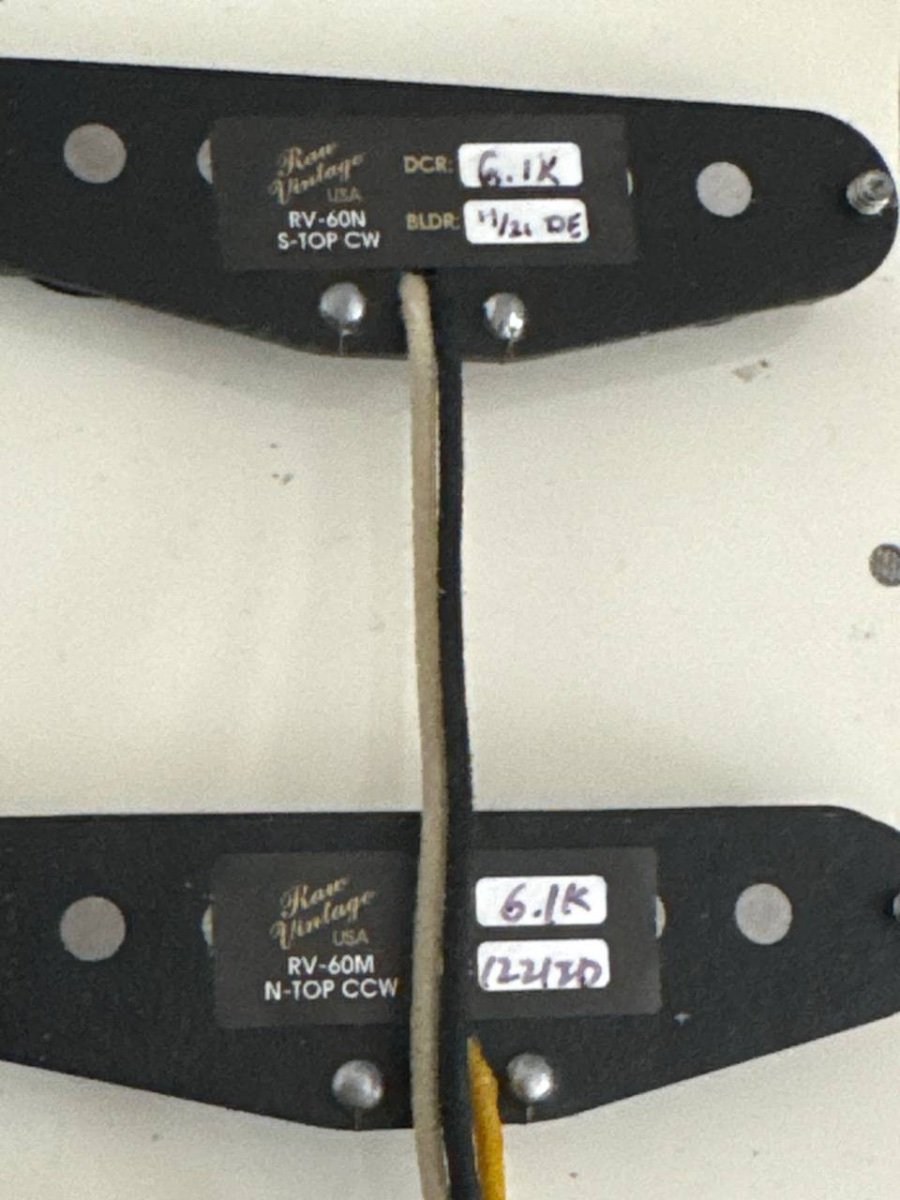 Administrador Ariel Pozzo Seredicz Posted March 4 Administrador Posted March 4 Mi Xotic tiene pickups Raw Vintage RV60 Alnico V, con magnetos staggered: La guitarra suena que te parte, de hecho cuando viajo en giras largas, es la unica que me llevo (para hacer lugar a alguna nueva adquisición...😁) Pero...tiene un problema. Exceso de "stratitis". Cuando toco la 3ra a la altura del traste 12-13-14, es muy notorio. Claro, alejo el pickup y desaparece esa vibración molesta...pero deja de sonar como me gusta, se pone muy flaco el audio, típico de un pickup muy bajo. El problema es específicamente los malditos magnetos de las 4ta y 3ra cuerdas, que para mi esta demasiado arriba: Tengo varias Strats con Alnico 5 y los pickups a la misma altura, sin drama...sera que estos magnetos son particularmente potentes? Quote