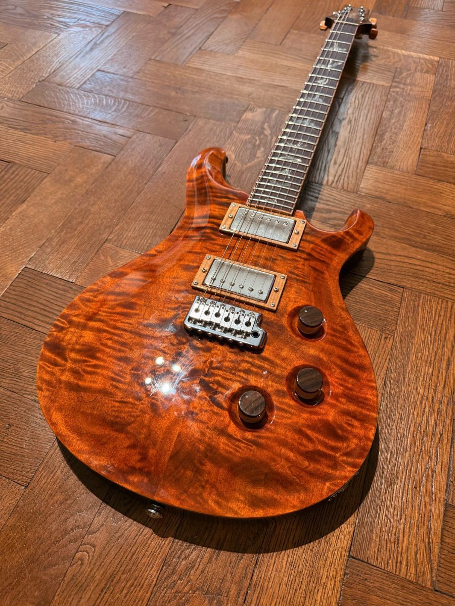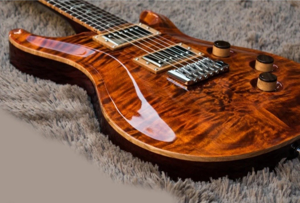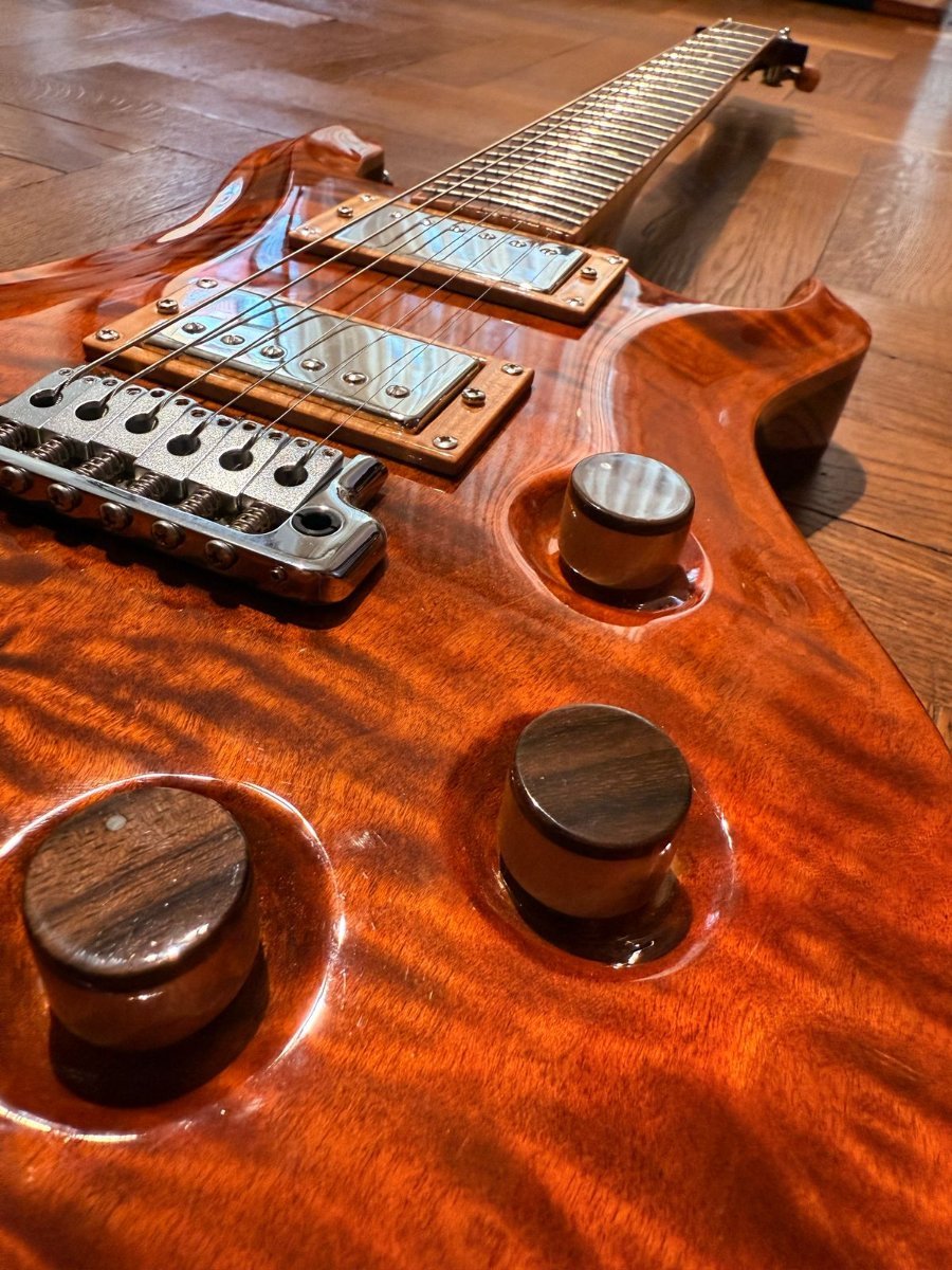 ssappia Posted April 7 Author Posted April 7 hace 1 hora, mediovago dijo: pfffff hermosa.. que laburo!!! particularmente no me gustan mucho las tapas y perillas de madera... pero no se puede negar que estan hechas de forma espectacular!!!! un laburo super ultra archi cuidadoso! im pre sio nan te!!! Muchas gracias!! Si, quería algo con detalles en madera , y cuando se lo propuse a Federico, le gustó la idea, fue super amable y atento durante todo el proyecto y tuvimos un super ida y vuelta, mandaba novedades a cada paso del proyecto, hace otro tipo de construcciones también. Vale aclarar que todo el trabajo de carved lo hizo manual, le lleve mi McCarty para que pudiera tomar medidas y utilizar de referencia. A pesar de que esta iba a tener 24 trastes y tremolo, es una manteca la verdad, quedo cómo la había soñado cuando empecé a definir con el, el proyecto, gracias a todos la verdad, todos los días aprendo más sobre maderas, accesorios y este mundo hermoso que es la guitarra. De hecho a diliberto también lo conocí por acá, por recomendación, y cuando vi que se podía hacer este sistema de 5 posiciones con los humbuckers. Cosa que en la PRS McCarty no tengo , me mande de una!! También. Un servicio impecable el de diliberto! Quote