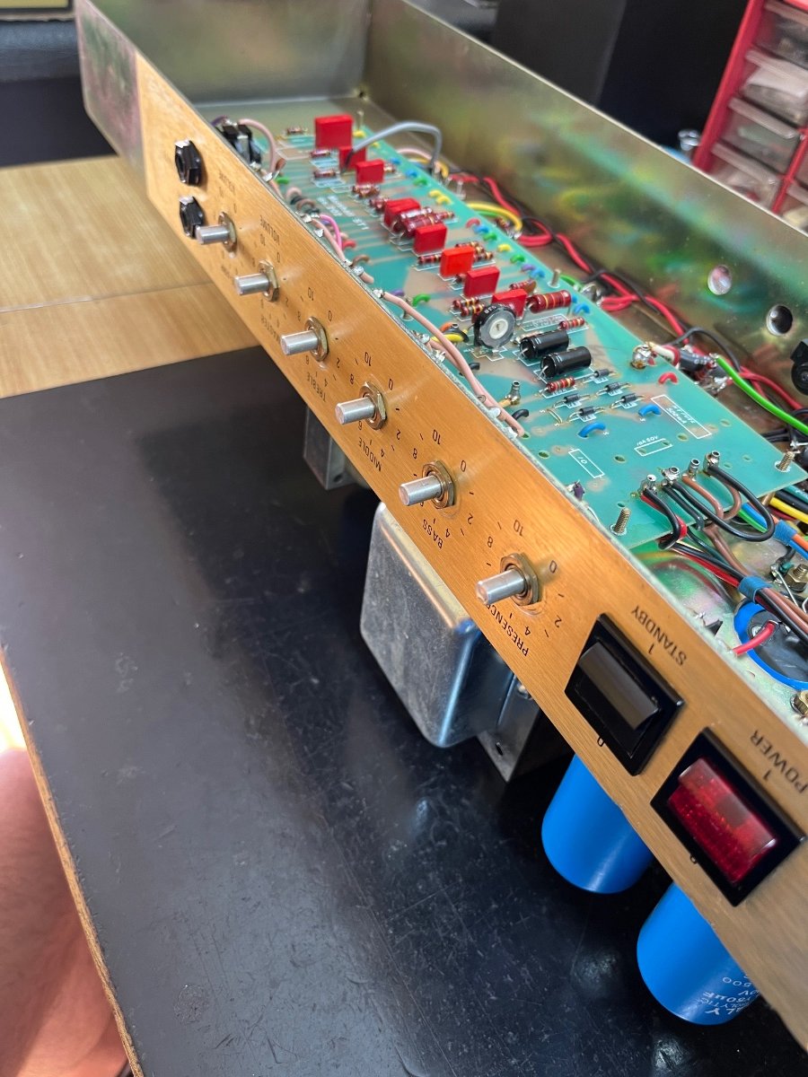 Popular Post Shenier Posted April 10 Popular Post Posted April 10 Buenas a todos! Es de mi agrado informarles a todos que desde ahora va a estar en el taller este Marshall JMP Master Volume de 1981 para su testeo y comparacion con los amplificadores que fabrico! Despues de muchos años de buscarlo al fin pude dar con un JMP en excelente condiciones sonoras y esteticas, son muy dificil de encontrar, mas dificil de pagar el precio correcto y todavia mas dificil tener la experiencia para compararlos! Porque un JMP? Porque estos amplificadores fueron los que usaron todos mi heroes de la guitarra, grabaron y giraron casi todos los discos mas clasicos del rock, hasta Mike Soldano dijo una vez que todod deberian tener un Marshall de los 70s Puntualmente el ampli es el circuito 2203 Master Volume que seria el 800 que todos conocemos antes que cambien la estetica a la famosa wide panel, es lo que se uso en los 70s. El Master Volume es la famosa era transición que empezo en el 75 y estos JMP duraron hasta el 83. En particular este año (1981) fue el primer año de fabricacion de la nueva linea JCM 800 “inaugurando” los 80s Como suena? Como todos se imaginan, 100w parecieran ser incontrolables pero nada que ver, hasta ahora vengo disfrutandoll mucho, con gain en 7 es mi ACDC, es el link perdido entre un plexi y un 800 y con un boost arriba logro casi todo lo que quiera No quiero extenderme mucho y si quieren hago un posteo en detalle de materiales pero La verdadera razon por la cual decidi comprar este equipo es para comparacion A/B instantanea de mis equipos, si bien por el taller pasaron muchos Marshalls JMP y 800s no es lo mismo tenerlo a disposicion 24/7 asi que todos los que pasen a probar mis Antares pueden compararlos! Les Dejo fotos y si quieren hago un video de como suena! Gracias a todos por leer! 25 Quote