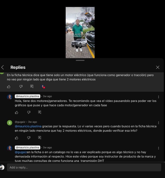 Administrador Ariel Pozzo Seredicz Posted September 21, 2025 Administrador Posted September 21, 2025 El viernes me entregaron mi nueva GMW Haval H6 HEV. Yo nunca había tenido un auto híbrido, y la experiencia me resultaba altamente interesante para investigar. Yo recordaba ese viejo capítulo de los Simpsons donde aparece un auto eléctrico como algo lento y poco confiable...y por otro lado, tengo un par de amigos con Toyota Corolla híbridos que los pude conducir un poco y si bien en ciudad van bien, en ruta son flor de tortas con su ICE de 98hp y su bajo torque cuando no actúa el motor eléctrico. Tuve una Ford Territory que compré en 2023 y me sacó todo tipo de miedos y preconceptos sobre los autos chinos. De hecho, creo firmemente que son muy superiores en calidad a cualquier cosa mercosur, e incluso hoy ya son iguales o mejores que los coreanos. Pero obviamente, la gente que nunca tuvo un auto Made iN China sigue bardeando porque cree que son chotos...bueno, no. 😂😂 Estuve entonces investigando, decidi cambiar la Territory por algo híbrido por tres razones: a ) No pagar patente en CABA por dos años b ) Pagar menos seguro c ) tener nuevas tecnologías y mayor potencia. Estuve probando varios modelos: BAIC X55II, Jetour Dashing, JAC JS6, Toyota Corolla Cross Hybrid, GMW Haval Jetour, GMW Haval H6. Y me decanté por la GMW Haval H6 HEV por los siguentes motivos: Potencia de 250CV y 530nm de torque (una bestialidad) Es bastante grande: 4,7 metros de largo, casi dos de ancho, 2,74 entre ejes, lo que le da una habitabilidad tremenda. Equipamiento recontra full Suspension trasera multilink Calidad de construccion impecable Disponiblidad de repuestos (conozco a Manuel Antelo, titular de Car One e importador de GMW Motors, desde hace mil años, su madre era la mejor amiga de mi suegra y aún hoy seguimos hablando, tengo info de primera mano sobre el stock de repuestos que hay y que siguen llegando) Car One tiene una base en Uruguay con toneladas de repuestos GMW/Haval para el mercado latinoamericano GWM acaba de abrir una planta de repuestos en Brasil Si bien el precio es relativamente competitivo para su segmento C grande (no es barata tampoco...ojo, cuesta hoy mas de 55 millones de pesos) debido que no paga el impuesto del 35% el producto me parece del mismo nivel que otros mucho mas caros a los que si alcanza el impuesto, como la Rav4 Hybrid, la CRV Hybrid, etc. Bueno, el tema es que en estos tres dias ya le hice casi 200km, la probé en ciudad, en autopista, bajo la lluvia, y estoy feliz de haber decidido comprarla...es simplemente espectacular. Ah...le llené el tanque al sacarla de la concesionaria el viernes (61 litros...me la entregaron casi sin nafta, ratones!) y recién cuando la dejé en mi cochera ya con 210km cumplidos, el indicador de combustible apenas bajó y me marca una autonomía actual de 840km. O sea, más de 1000 km con un tanque, en uso mixto ciudad/ruta. 😳😳 El pique que tiene es infernal...la agilidad en el tránsito debido a su enorme torque y potencia es alucinante. La comodidad, lo silenciosa (hasta una velocidad de unos 80km anda generalmente solo con el motor electrico), el andar aplomado (pesa mas de dos toneladas debido a los tres motores delanteros (un naftero y dos electricos) y el pack de baterías debajo del baúl)...no tengo mas que elogios. Bah, si, una critica: El sistema de audio, si bien tiene 8 parlantes y suena fuerte...no es gran cosa Y otra cosa que es inevitable: No tiene rueda de auxilio ya que ese espacio debajo del baul esta ocupado por el pack de baterías, en su lugar trae un kit de reparación y un compresor con lo que zafas ante un pinchazo, pero si rompes una cubierta, fuiste...quedaste tirado. Resumiendo, es obvio que recien la tengo y todo es a través del cristal rosa de la novedad, pero estoy feliz y encima tengo 7 años o 150.000km de garantía del auto, y 8 años o 160.000km de garantía por las baterías, así que duermo en paz. Corolario: Los chinos le rompieron el @rto a muchos fabricantes tradicionales...no te quedes con la impresión que te causó ese autito chino barato que probaste hace diez años...esto es otro mundo.