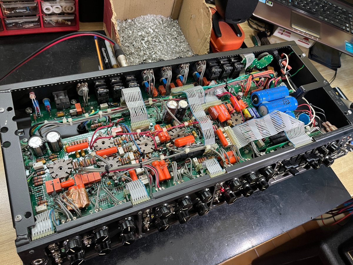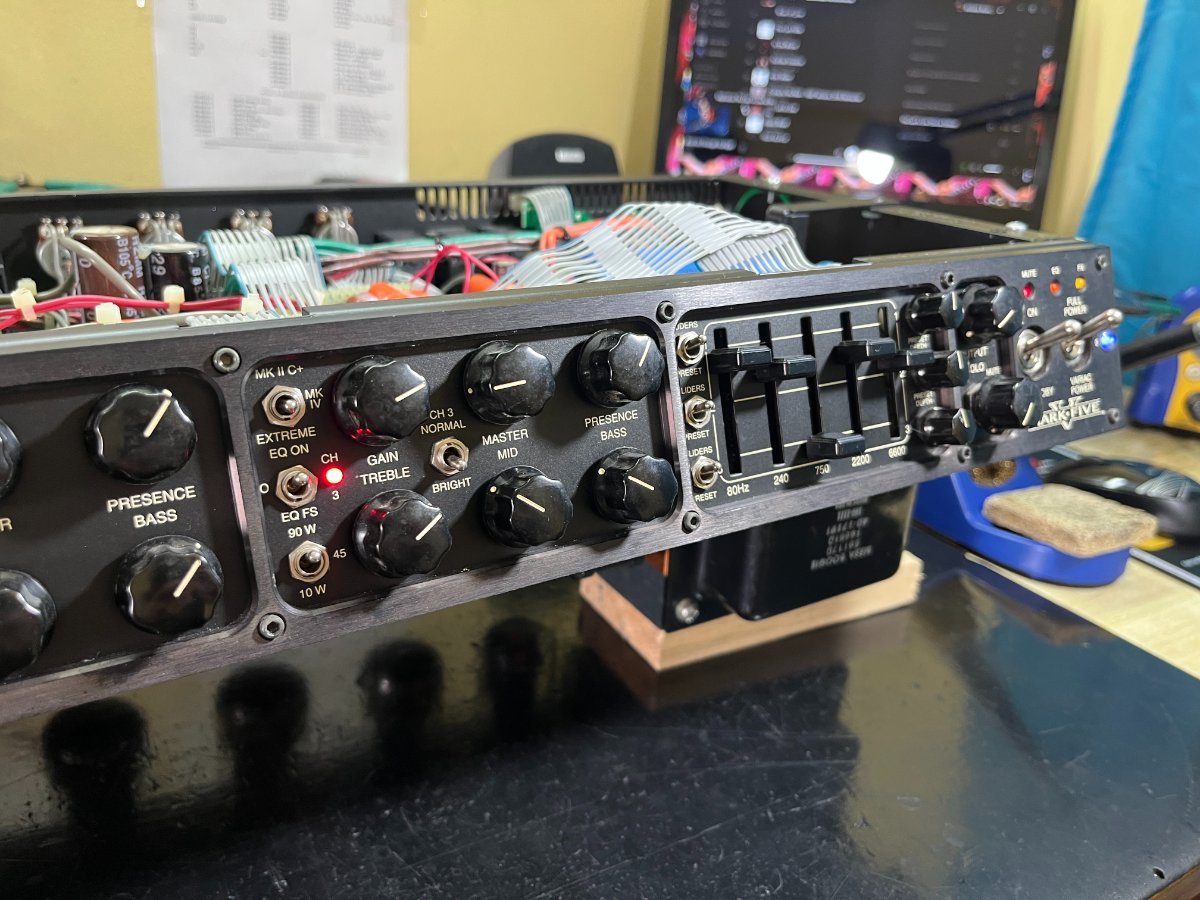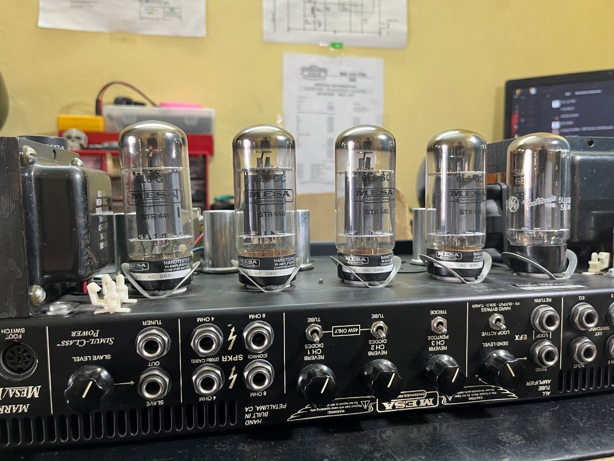 Popular Post Shenier Posted January 7 Popular Post Posted January 7 Buen 2026 a todos! Como primer posteo del año queria compartir un trabajo reciente, reparar un Mark V. Es una bestia maravillosa, debe mi boogie favorito, tiene un audio gomoso un poco diferente de los Mark anteriores y fue apadrinado por Petrucci durante muchos años Adentro realmente es una ciudad, opciones y opciones por canal, realmente Randall Smith no puede hacer un ampli sencillo jajaja Como todo Mesa la calidad es altisima en todos lados salvo ciertas mañas que vienen arrastrando desde los viejos Mark como montar la placa sobre postes plasticos que hacen que se doble a veces y cause cortos en la señal de audio como en este caso. En el reel que les dejo muestro apenas como dejar solidos dos capacitores que estaban haciendo falso contacto en la potencia y hacia aparecer un problema random en todos los canales. Siempre que llega un Mark V pongo los seteos de Petrucci que me parecen demoledores pero esta vez como venia escuchando algo un poco mas agresivo (Darrell) y logre un seteo tremendo en el canal red que se los dejo a los que tienen el amp para probar en la ultima foto y tambien un poco de como quedo sonando! https://www.instagram.com/p/DTMGykMjClE/ 11 Quote